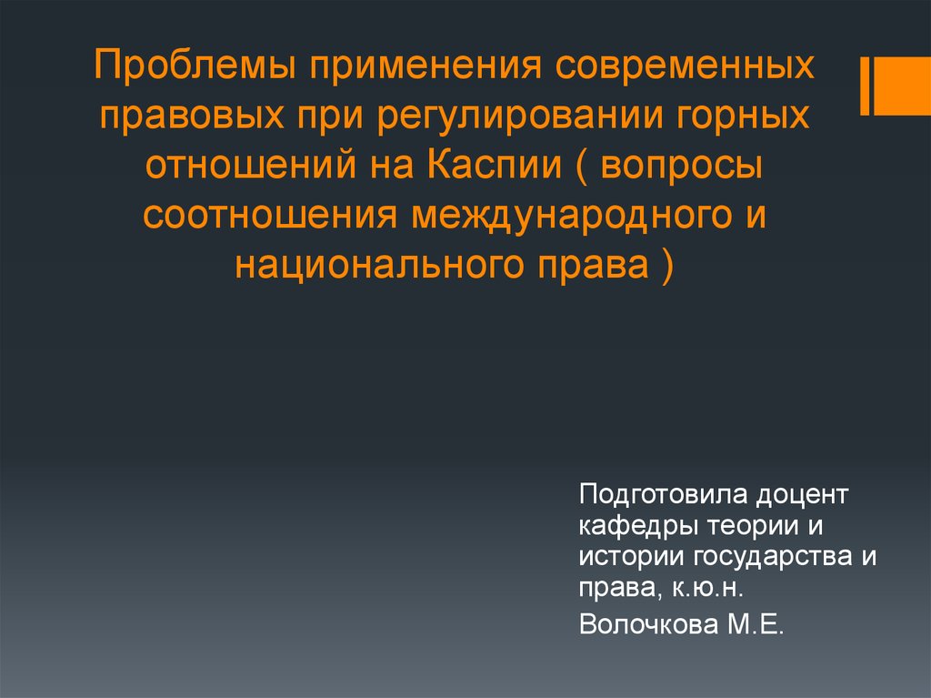 1. Проблемы применения современных правовых при регулировании горных отношений на Каспии ( вопросы соотношения международного и