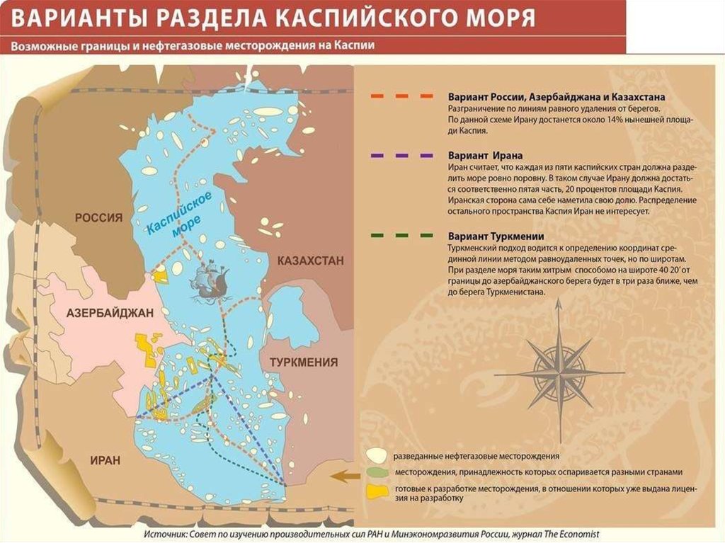 После распада СССР раздел Каспийского моря долгое время был и до сих пор остаётсяпредметом неурегулированных разногласий, связанных с разделом ресурсов каспийского