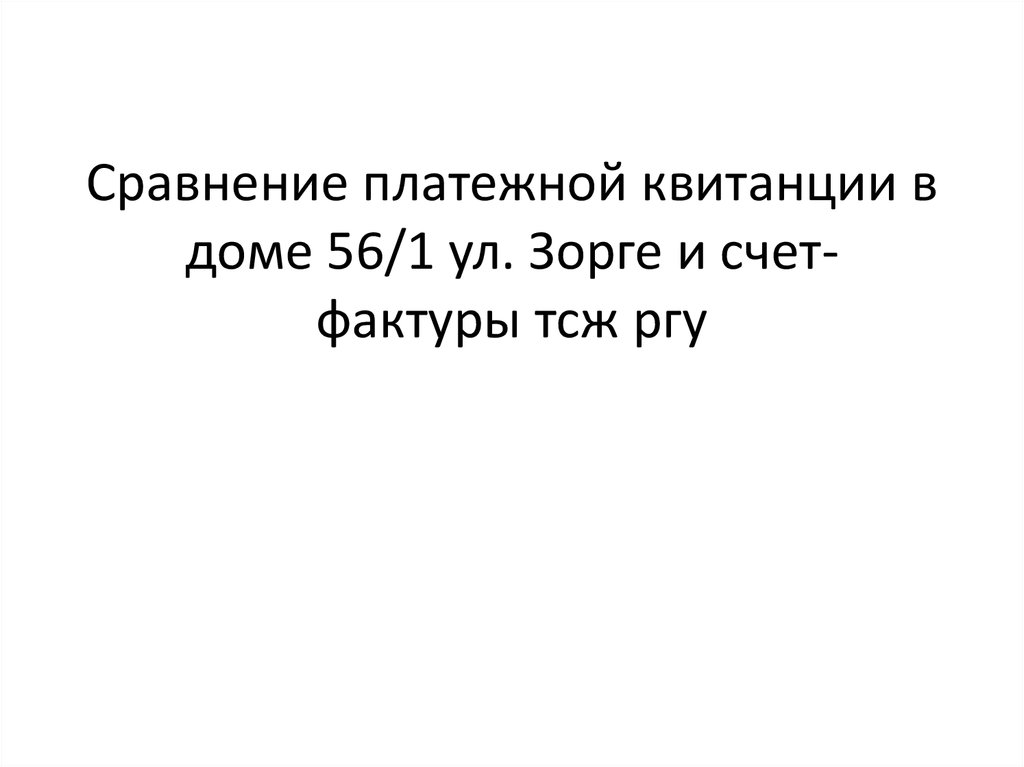Сравнение платежной квитанции вдоме 56/1 ул. Зорге и счетфактуры тсж ргу