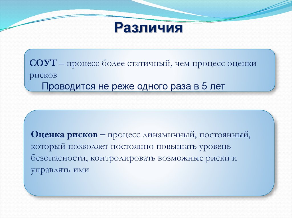 РазличияСОУТ – процесс более статичный, чем процесс оценки