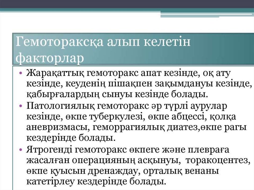 • Гемоторакс кезінде плевраішілік қан кетуді