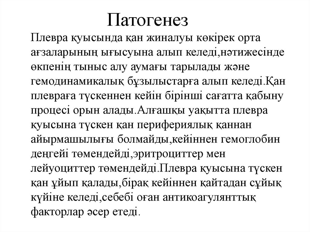ПатогенезПлевра қуысында қан жиналуы көкірек орта