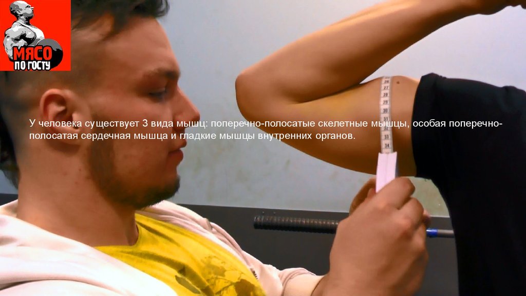 У человека существует 3 вида мышц: поперечно-полосатые скелетные мышцы, особая поперечнополосатая сердечная мышца и гладкие мышцы внутренних органов.3.