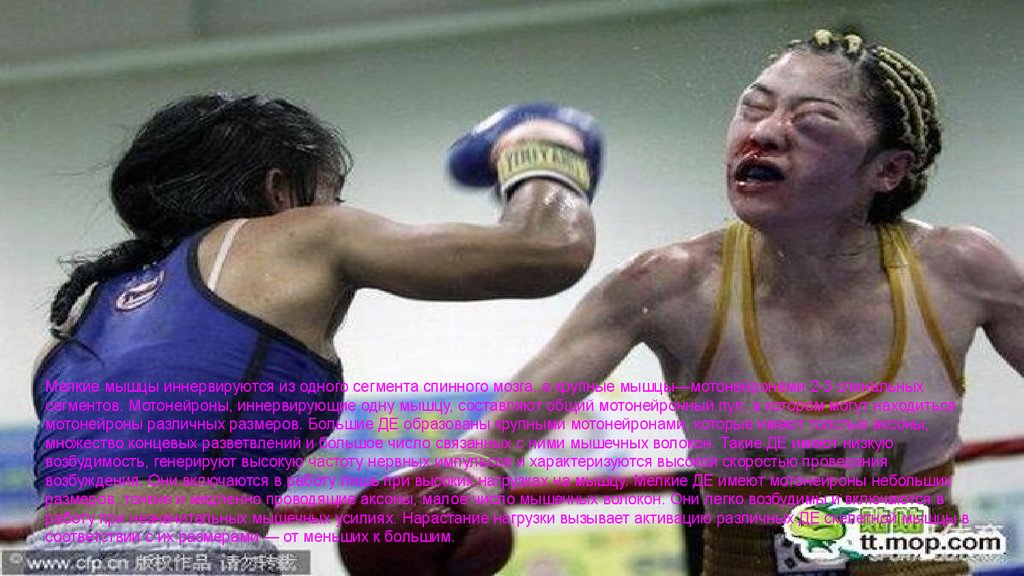 размеров, тонкие и медленно проводящие аксоны, малое число мышечных волокон. Они легко возбудимы и включаются в