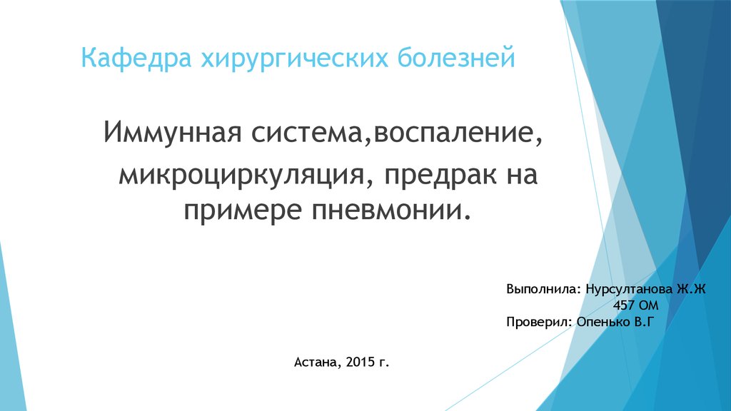 Иммунная система, воспаление, микроциркуляция, предрак на примере пневмонии