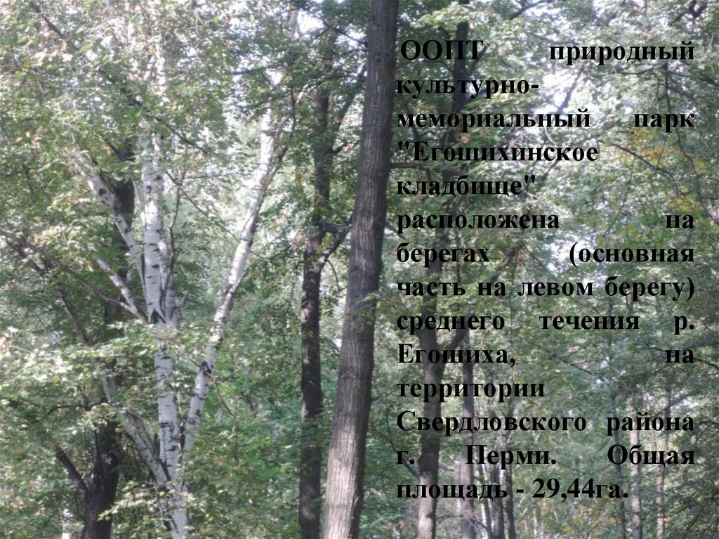 1. «Моя природная территория» ООПТ Егошихинское кладбище.