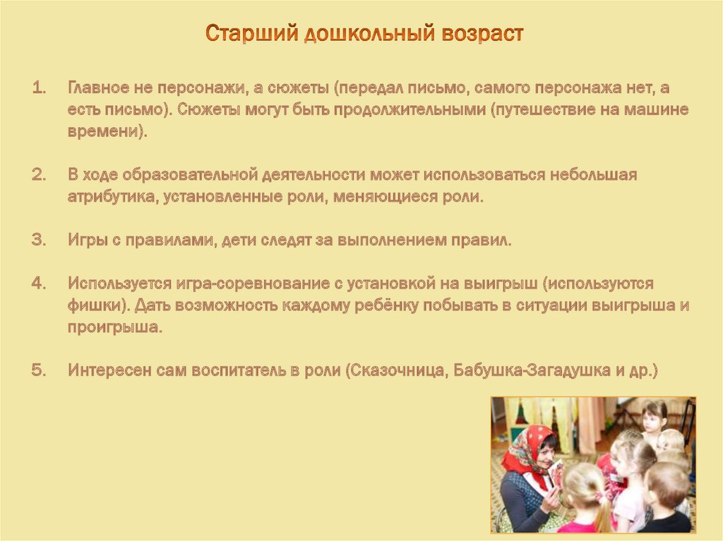 Интересен сам воспитатель в роли (Сказочница, Бабушка-Загадушка и др.)