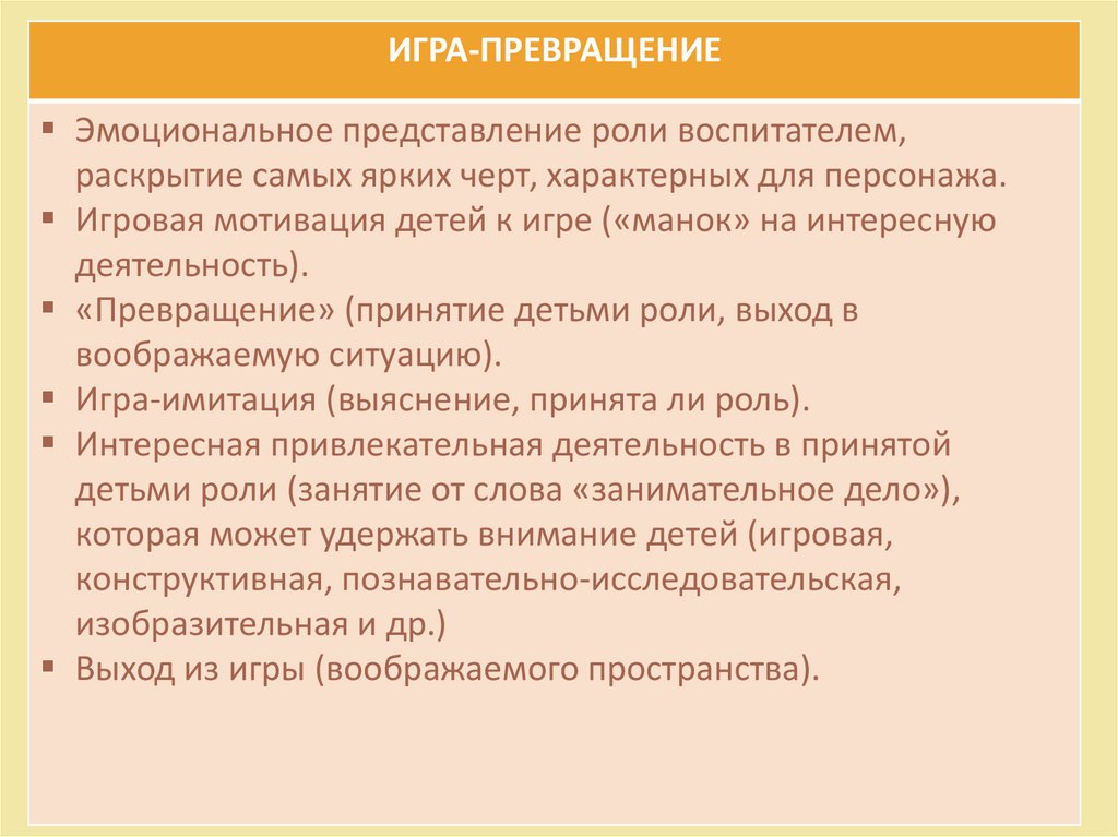 ИГРА-ПРЕВРАЩЕНИЕЭмоциональное представление роли воспитателем,