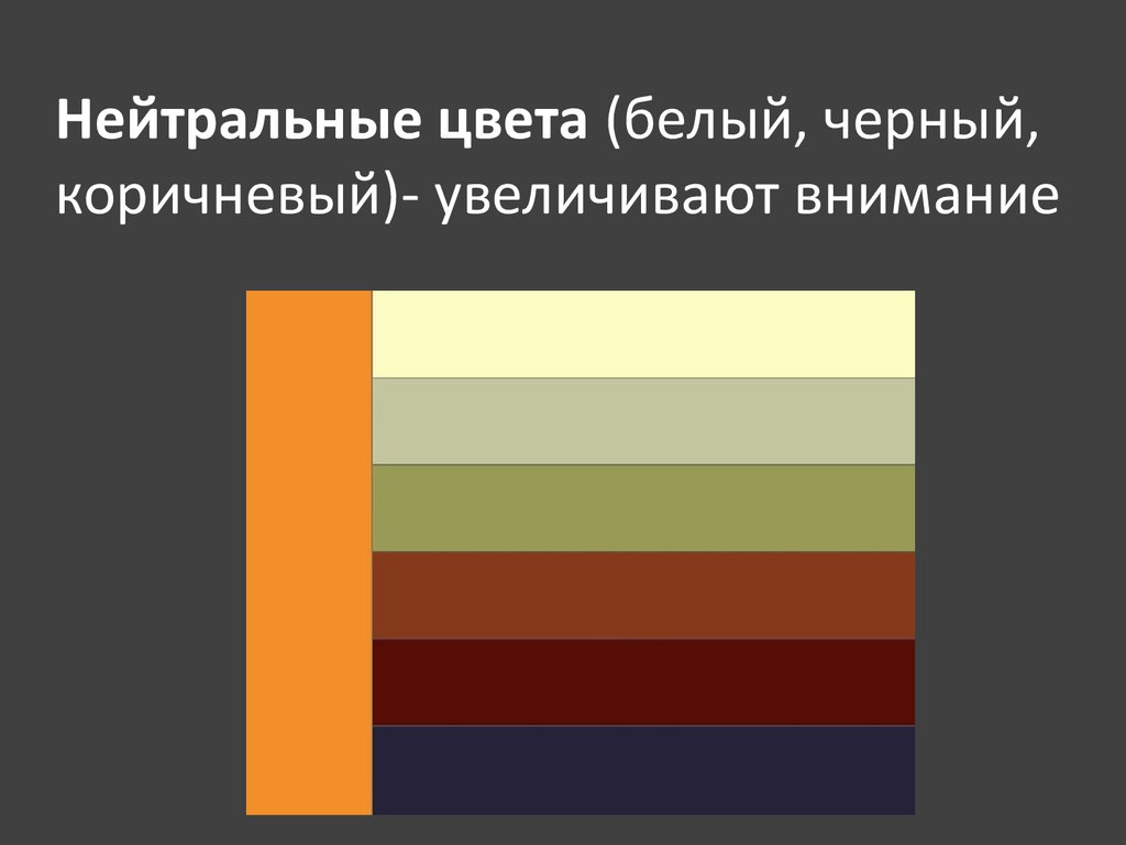 Нейтральные цвета (белый, черный,коричневый)- увеличивают внимание