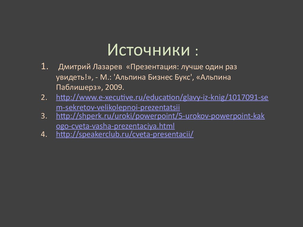 Источники :1. Дмитрий Лазарев «Презентация: лучше один раз
