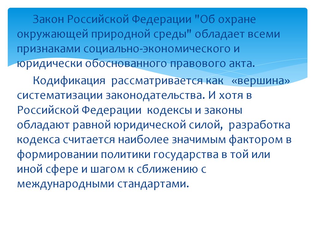 Закон Российской Федерации "Об охранеокружающей природной среды" обладает всеми