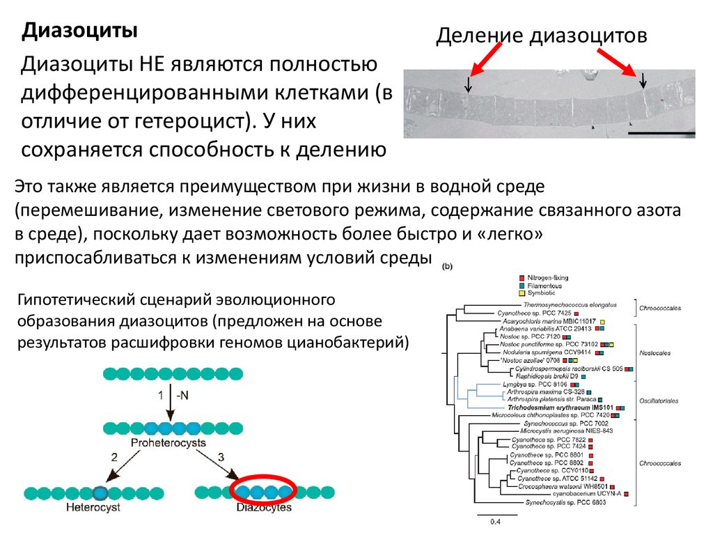 Гетероцисты – результат клеточной дифференциации.
