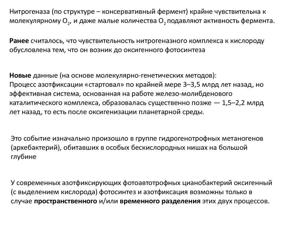 Ранее считалось, что чувствительность нитрогеназного комплекса к кислороду