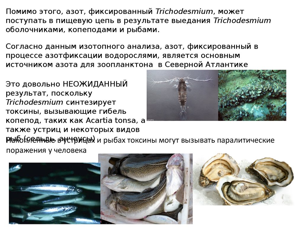 устрицах и рыбах токсины могут вызывать паралитические