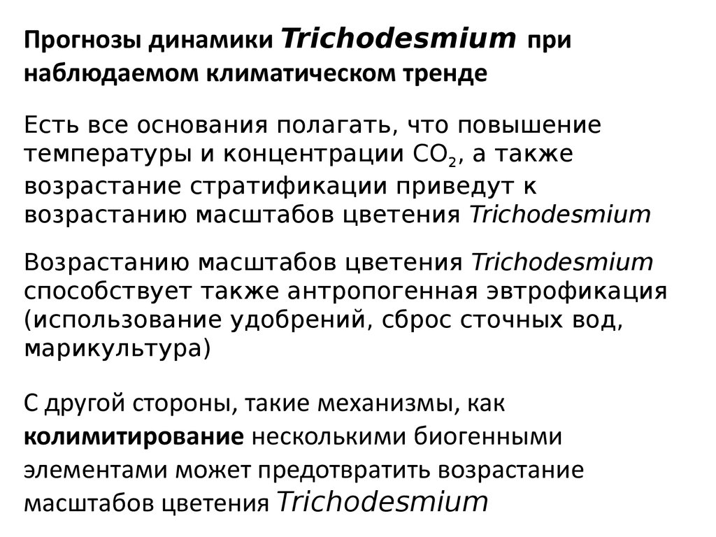 Прогнозы динамики Trichodesmium принаблюдаемом климатическом тренде