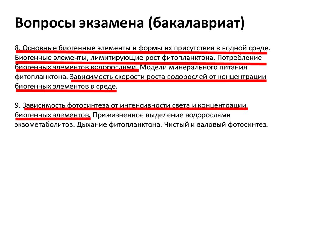 Вопросы экзамена (бакалавриат)8. Основные биогенные элементы и формы их присутствия в водной среде.