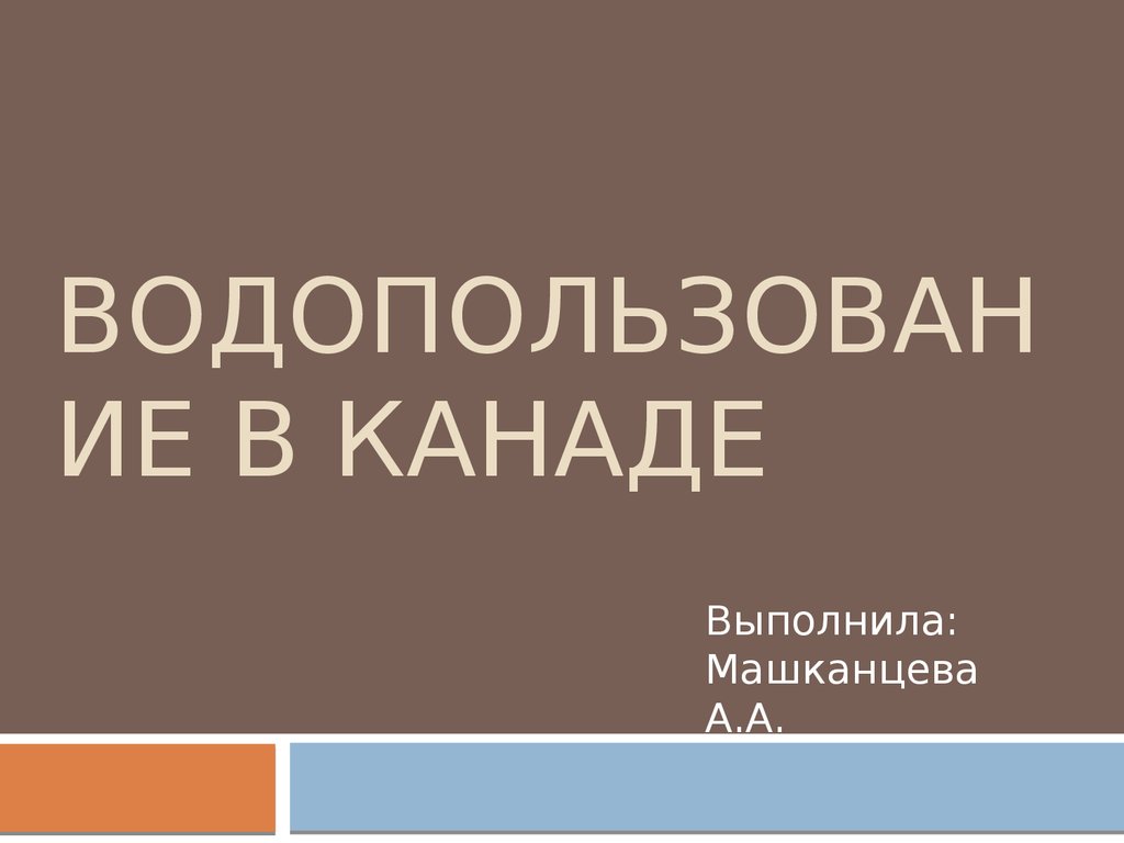 ВОДОПОЛЬЗОВАНИЕ В КАНАДЕ