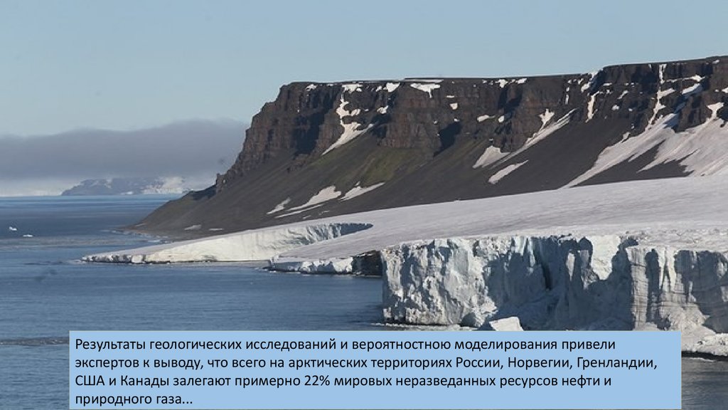 Результаты геологических исследований и вероятностною моделирования привелиэкспертов к выводу, что всего на арктических территориях России, Норвегии, Гренландии,