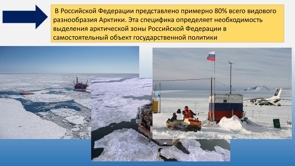 В Российской Федерации представлено примерно 80% всего видовогоразнообразия Арктики. Эта специфика определяет необходимость