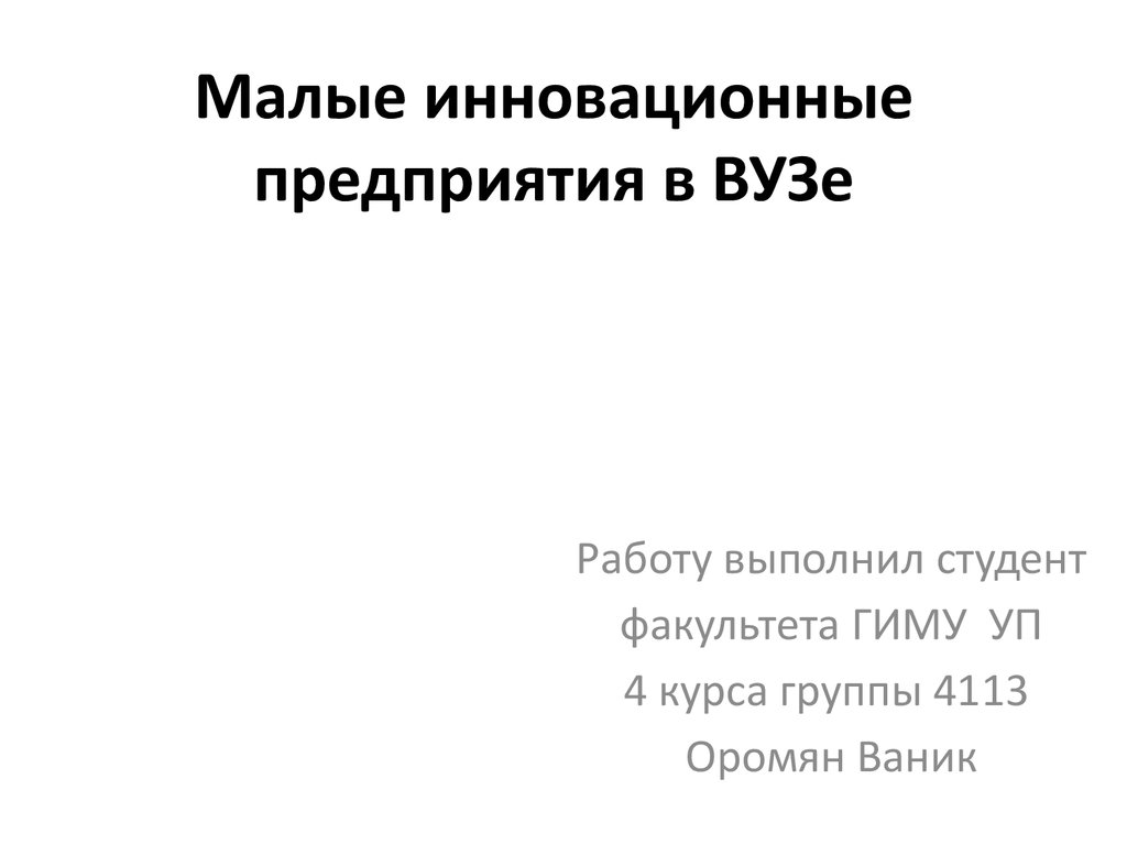 Цель работы – исследование проблем функционированиямалых инновационных предприятий в ВУЗе