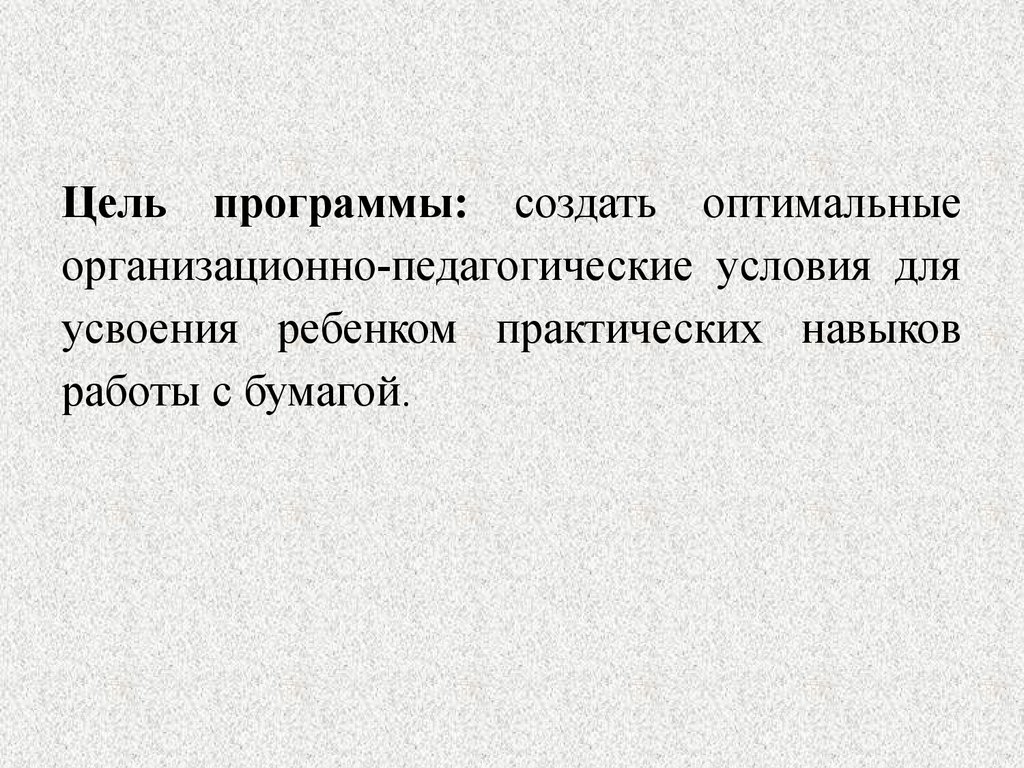 Цель программы: создать оптимальныеорганизационно-педагогические условия для