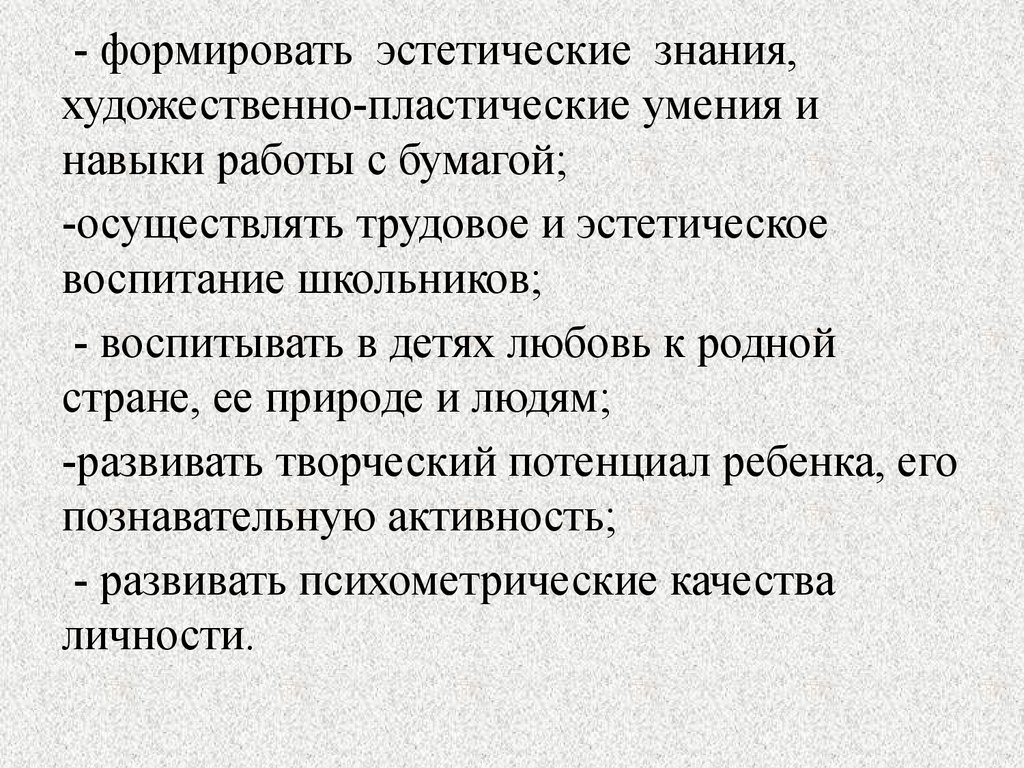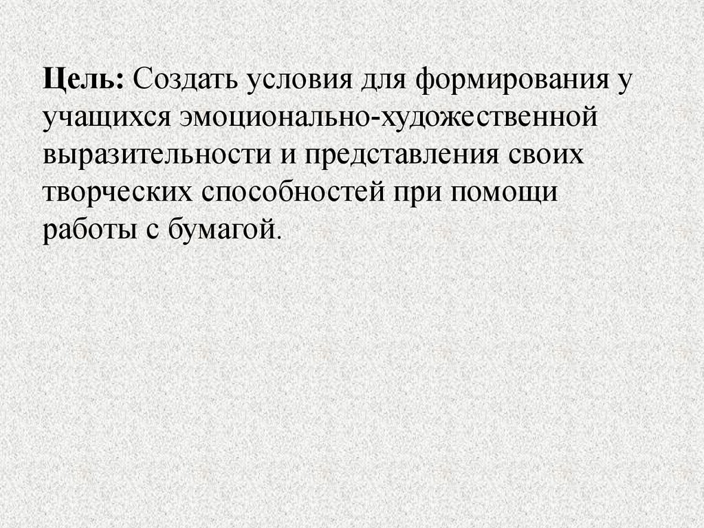 Цель: Создать условия для формирования уучащихся эмоционально-художественной