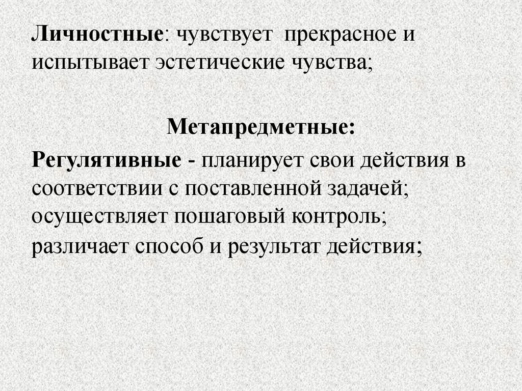 Личностные: чувствует прекрасное ииспытывает эстетические чувства;