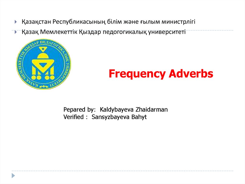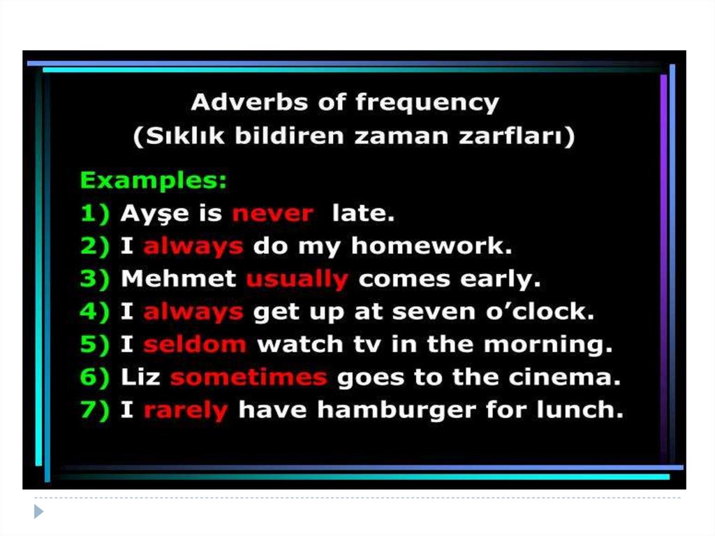 Жиілік үстеулері Be (am,is,are)көмекші етістігінен кейін