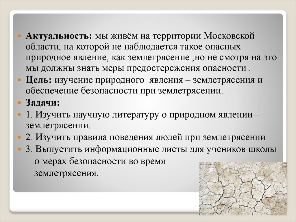 Цель: изучение природного явления – землетрясения и