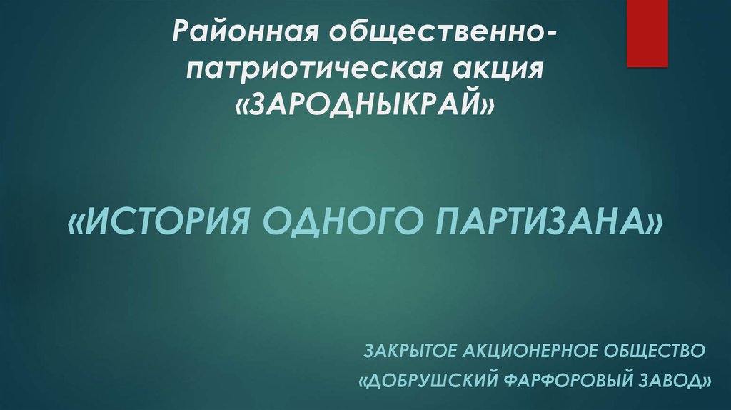 Районная общественно-патриотическая акция «ЗАРОДНЫКРАЙ». «История одного партизана»