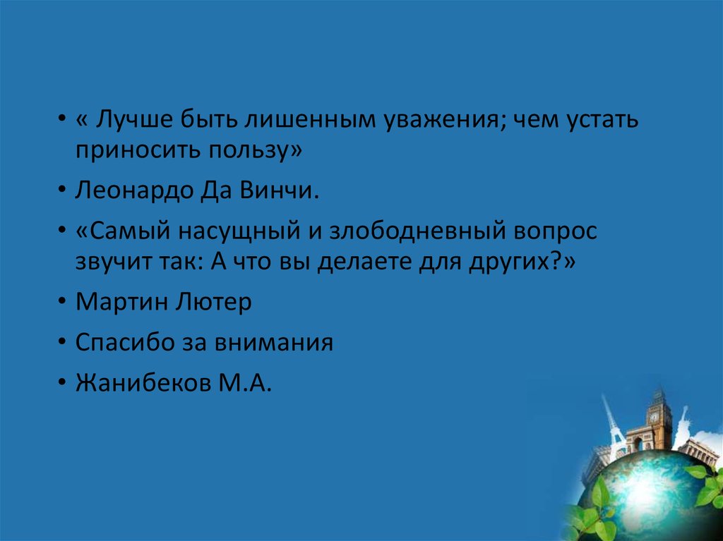 • « Лучше быть лишенным уважения; чем устатьприносить пользу»