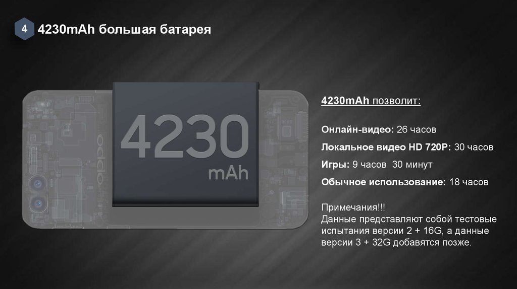 4 4230mAh большая батарея4230mAh позволит: