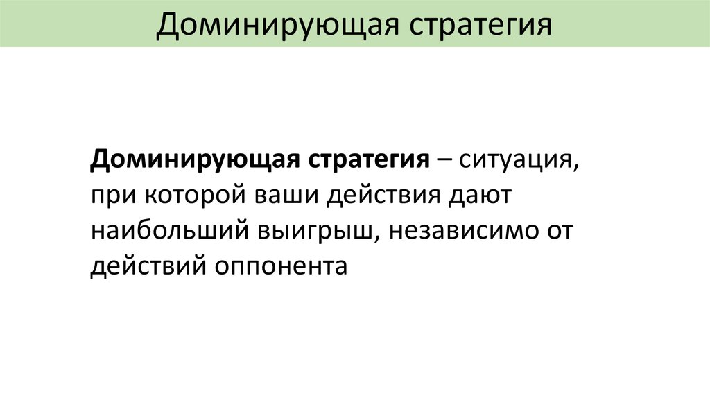 Доминирующая стратегияДоминирующая стратегия – ситуация,