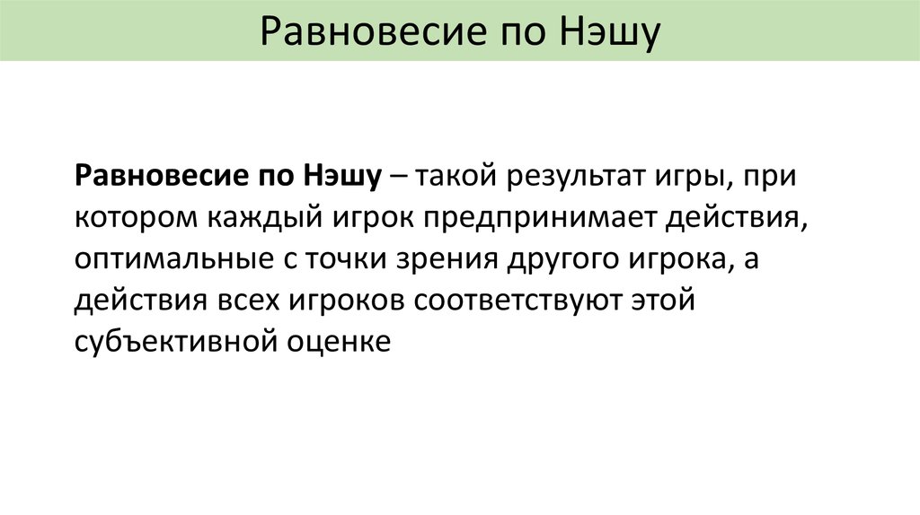 Равновесие по НэшуРавновесие по Нэшу – такой результат игры, при