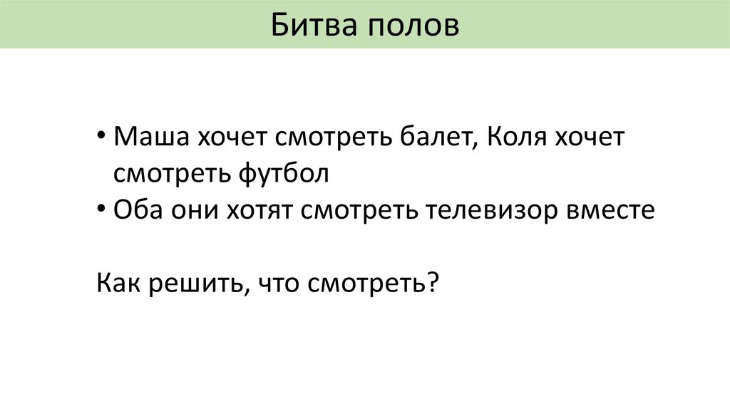 Битва полов• Маша хочет смотреть балет, Коля хочет