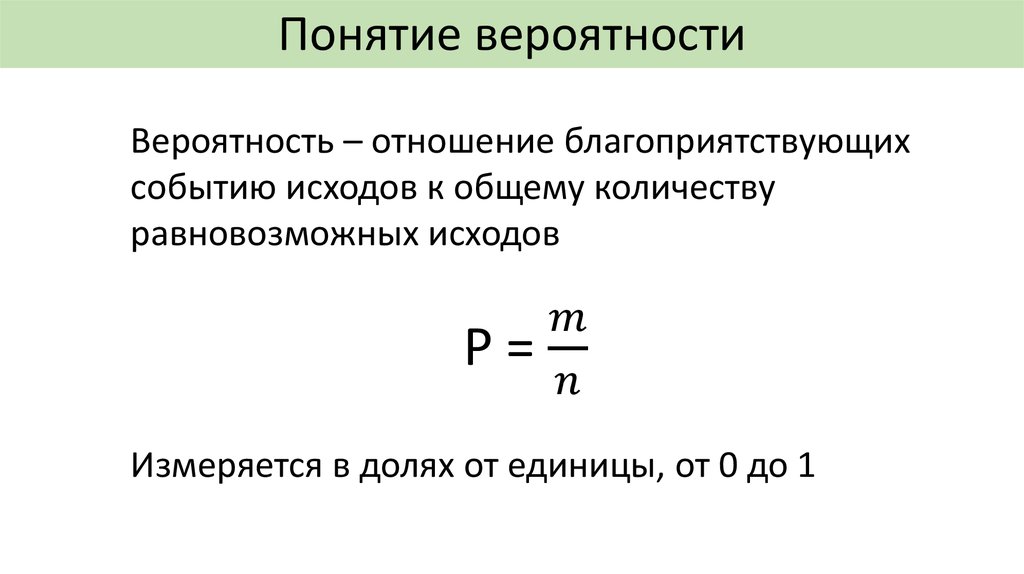 Понятие вероятностиВероятность – отношение благоприятствующих