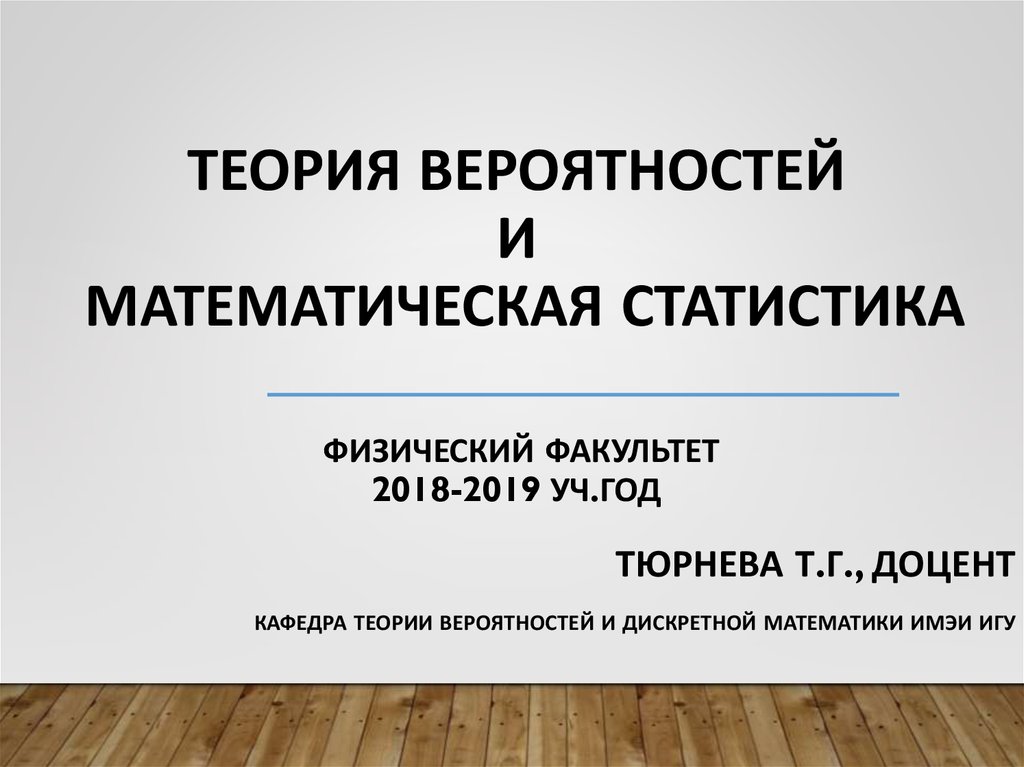 1. Теория вероятностей и математическая статистика физический факультет 2018-2019 уч.год