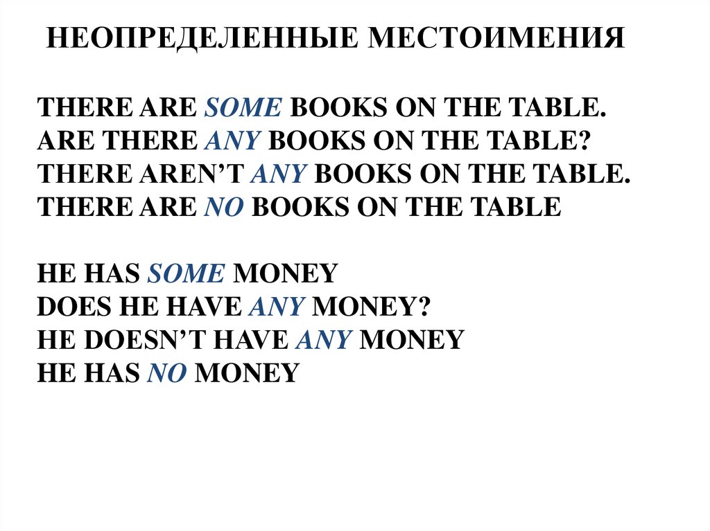 НЕОПРЕДЕЛЕННЫЕ МЕСТОИМЕНИЯTHERE ARE SOME BOOKS ON THE TABLE.