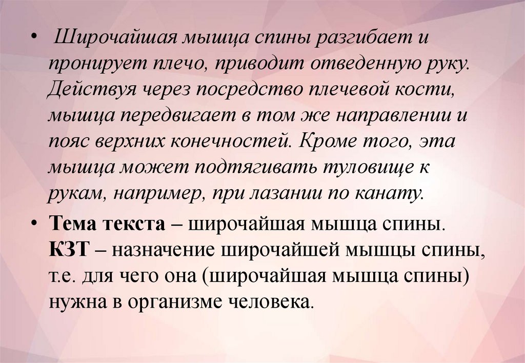 • Тема текста – широчайшая мышца спины.
