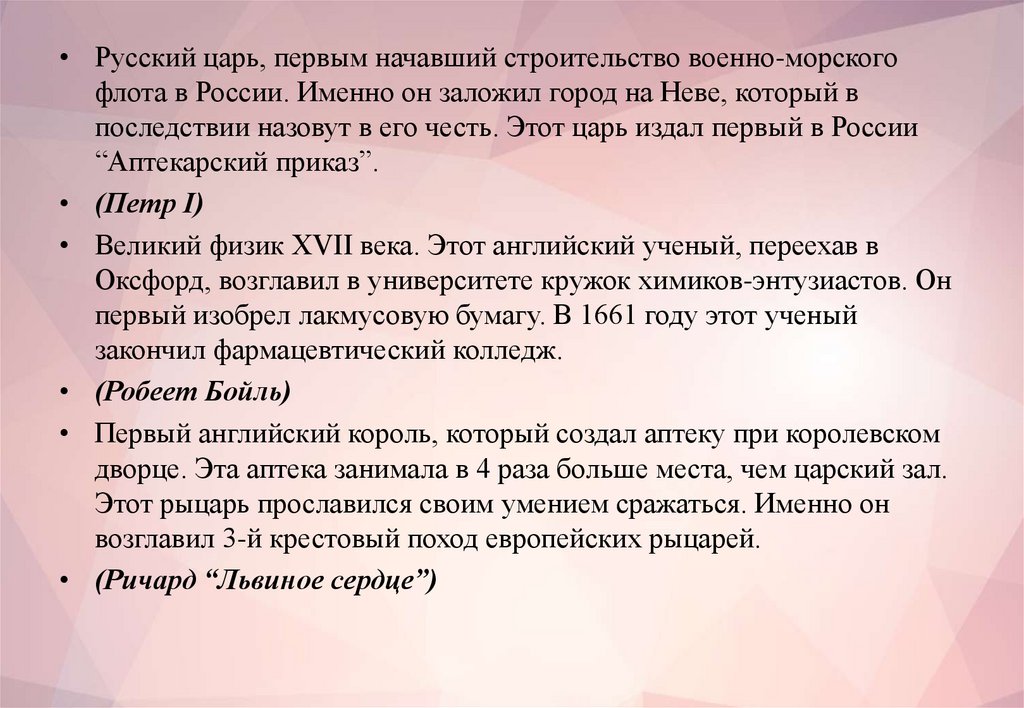 24. “Интересные факты из истории фармации”.