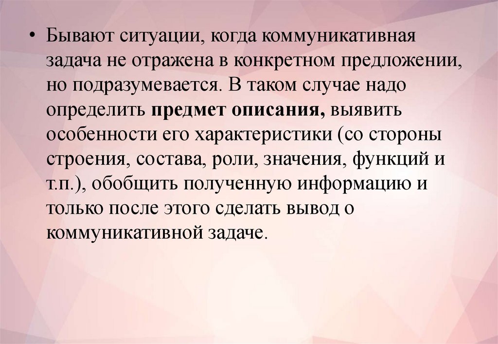 • Бывают ситуации, когда коммуникативнаязадача не отражена в конкретном предложении,