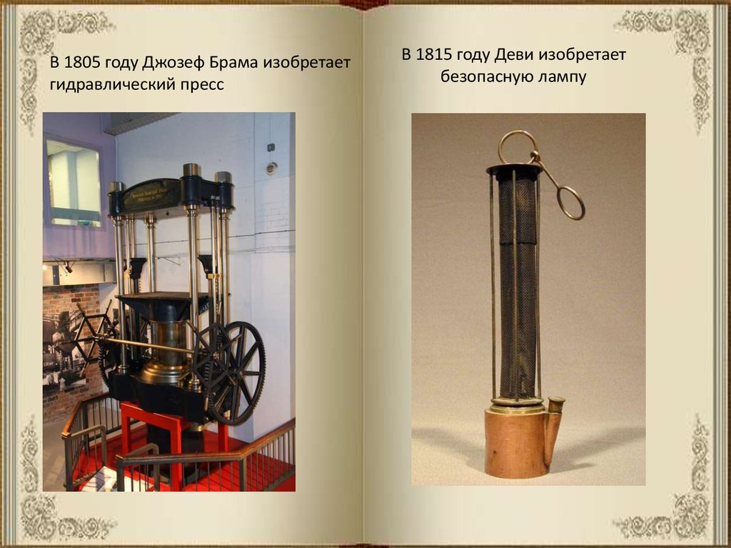 В 1805 году Джозеф Брама изобретаетгидравлический пресс