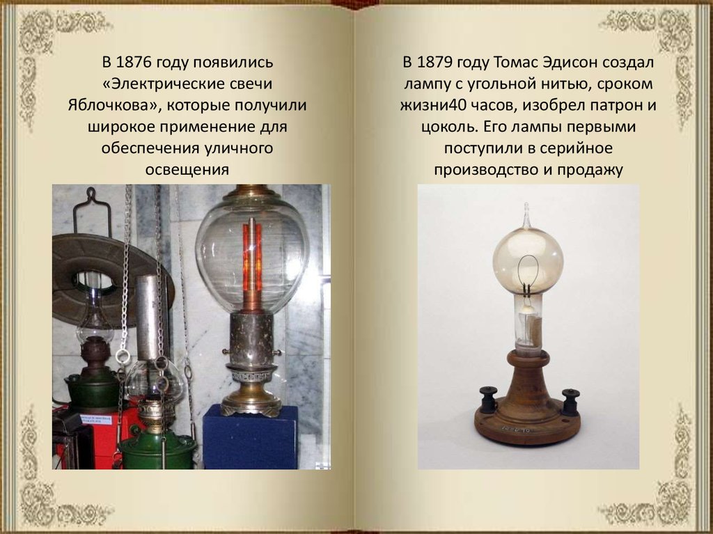 В 1876 году появились«Электрические свечи