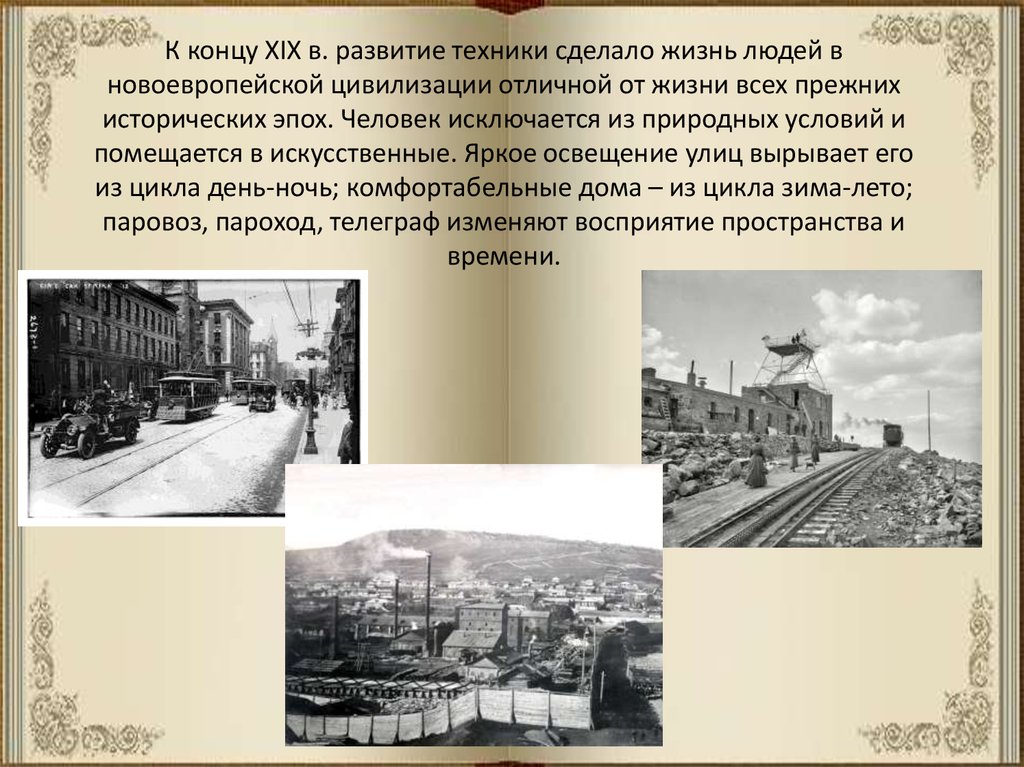 К концу XIX в. развитие техники сделало жизнь людей вновоевропейской цивилизации отличной от жизни всех прежних