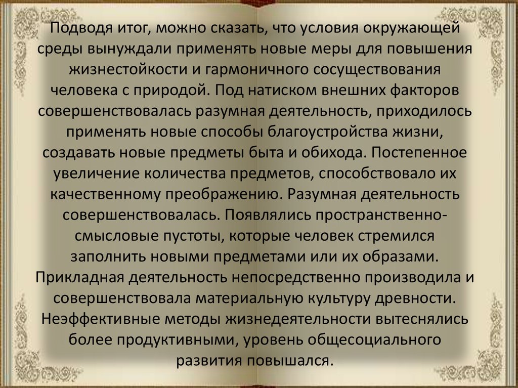 совершенствовалась разумная деятельность, приходилось