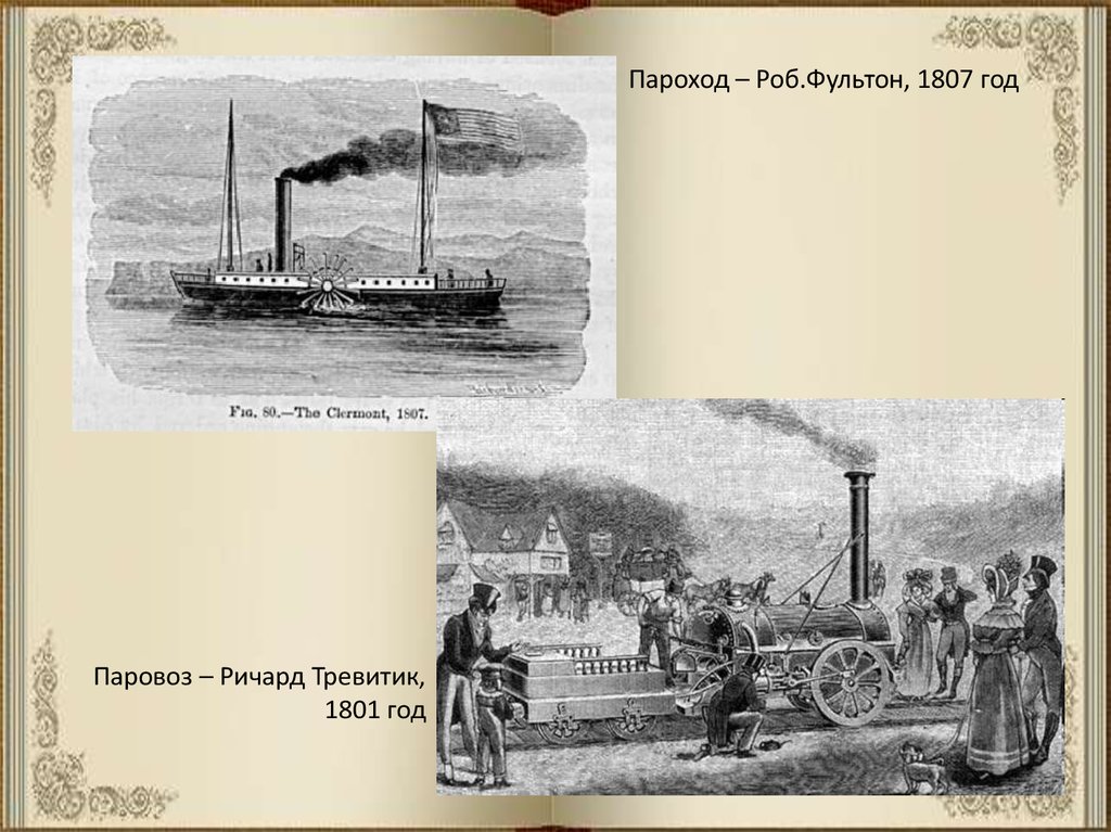 Пароход – Роб.Фультон, 1807 годПаровоз – Ричард Тревитик,