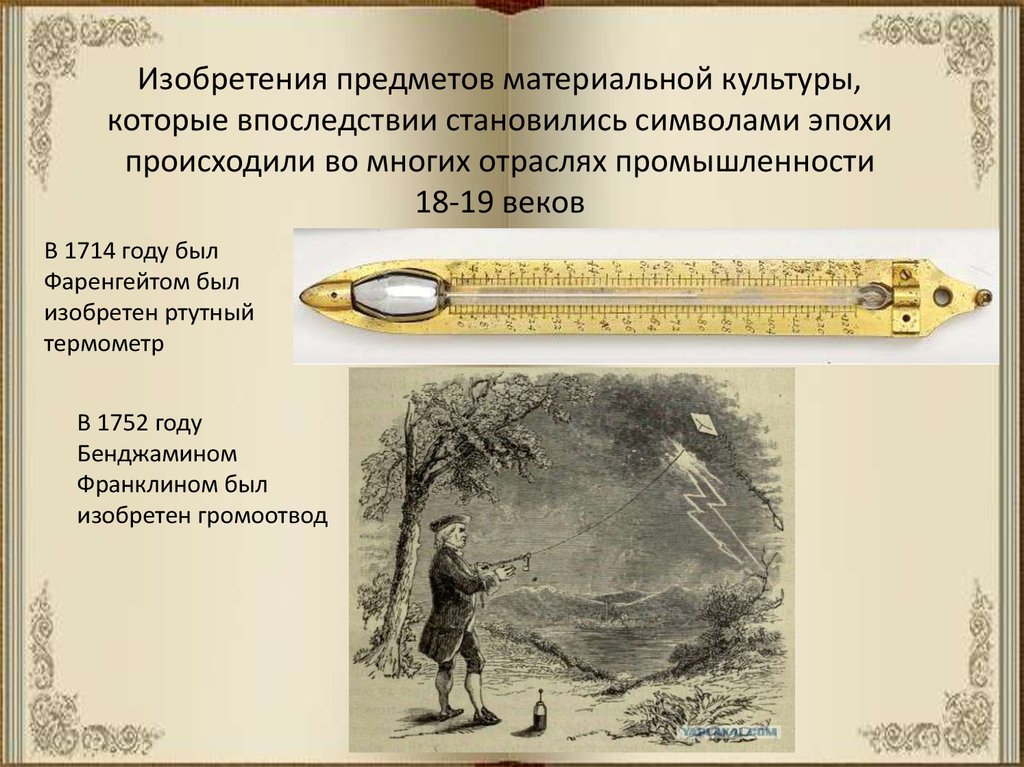 Изобретения предметов материальной культуры,которые впоследствии становились символами эпохи