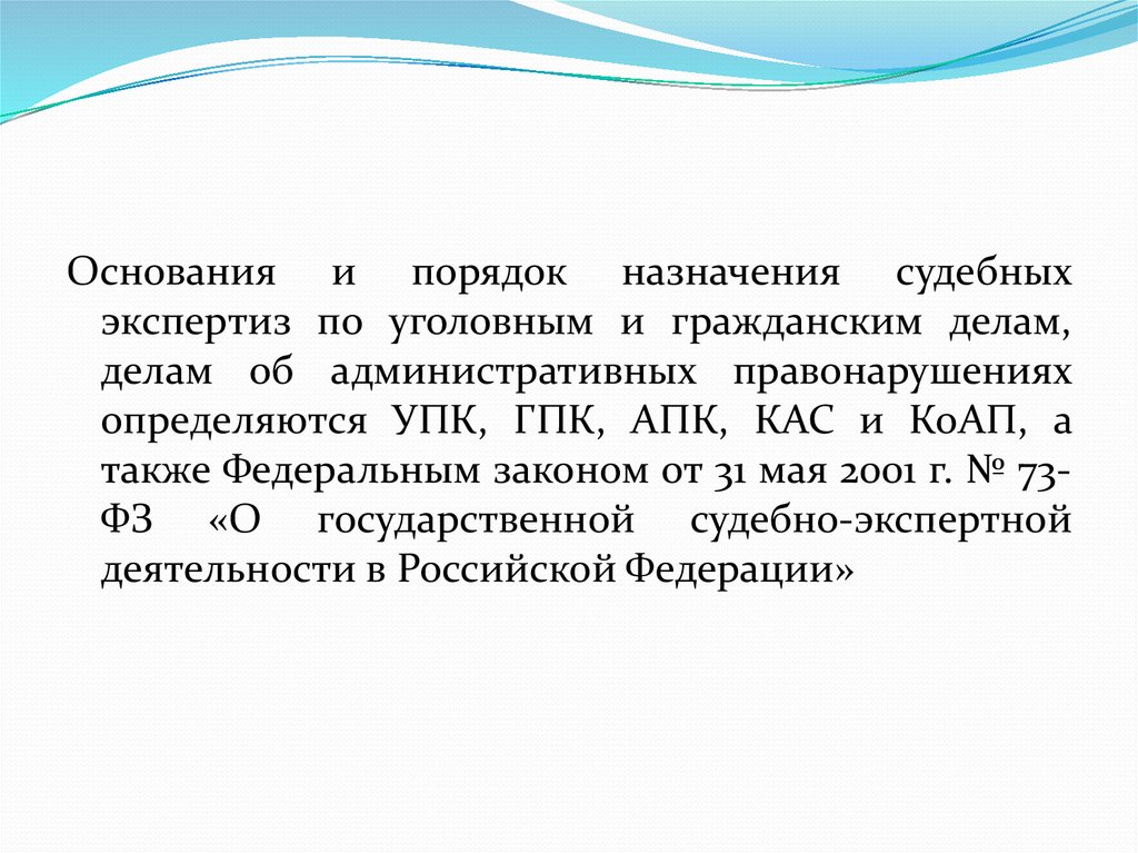 Основания и порядок назначения судебныхэкспертиз по уголовным и гражданским делам,