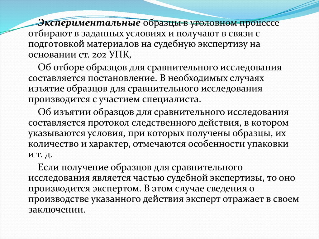 Экспериментальные образцы в уголовном процессеотбирают в заданных условиях и получают в связи с