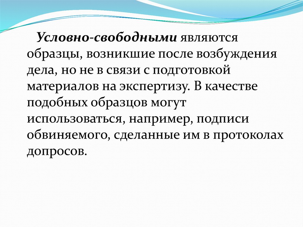 Свободными образцами являются такие, которыеобразовались до начала производства по делу и вне